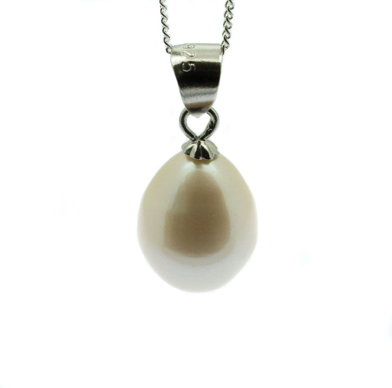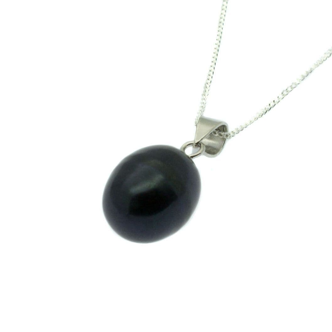 Pearl Drop Pendant - 9-10 mm Oval Freshwater Pearl - Sterling Silver Black or White