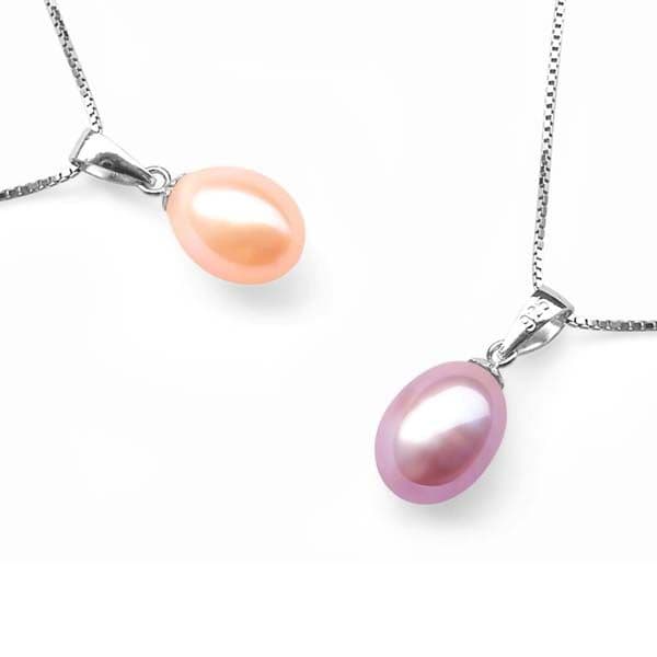 Pearl Drop Pendant - AA 7mm - Sterling Silver. White, Peach, Lavender and Black